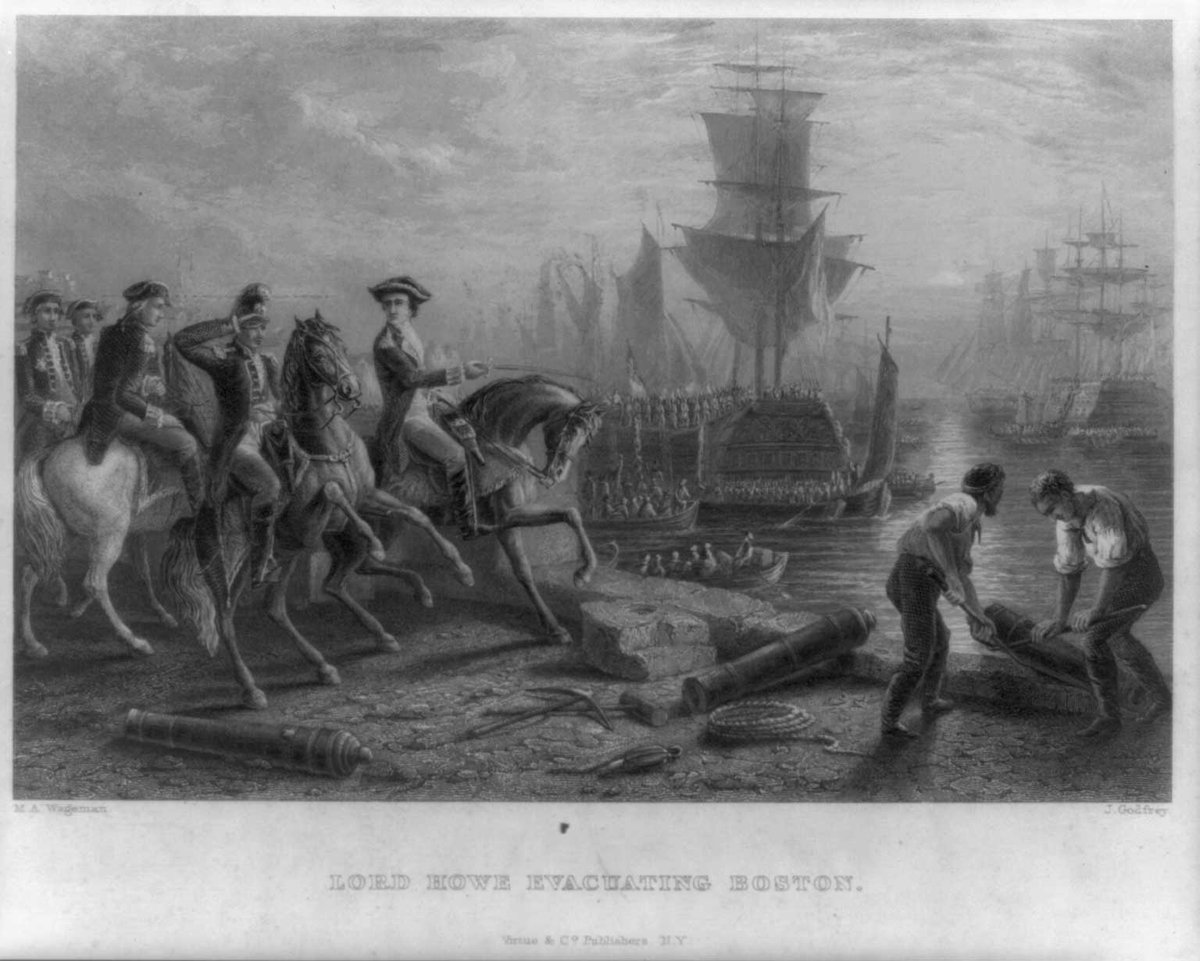 The British and Americans were at a stalemate through the winter. In March 1776, Washington took possession of Dorchester Heights, overlooking the town of Boston. By placing newly-arrived artillery at this strategic location, the Americans compelled British forces to evacuate the town. The victorious Americans maintained control of Boston for the rest of the war.10